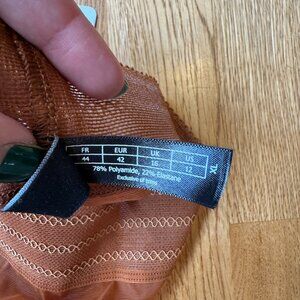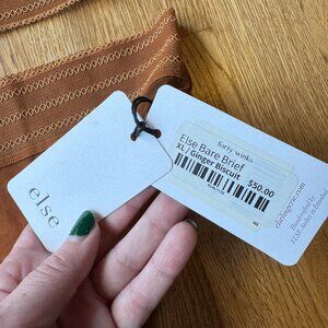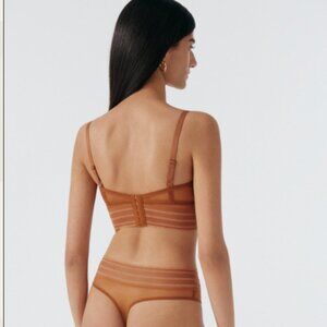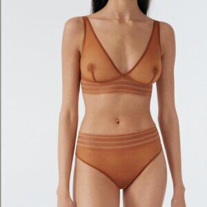 Else Sheer Bra and Brief set. Stock photos provided for style and fit reference. Brand new, tags still attached. The brand is Else but the tags say it was sold at Net-A-Porter. The color is called Ginger Biscuit. Size XL.