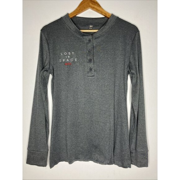 Netflix Lost In Space Shirt Women's XL Long Sleeve Gray Henley Shirt