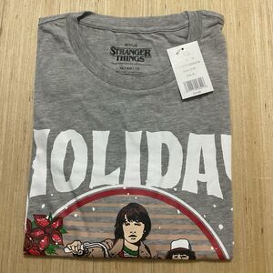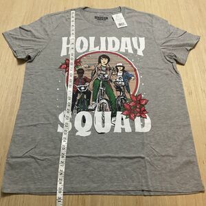 Get into the holiday spirit with this festive Netflix Stranger Things Men's Large Holiday Squad Christmas Graphic T-Shirt. This comfortable basic tee features a crew neckline and short sleeves, perfect for casual occasions. The gray color and solid pattern make it a versatile addition to any wardrobe.