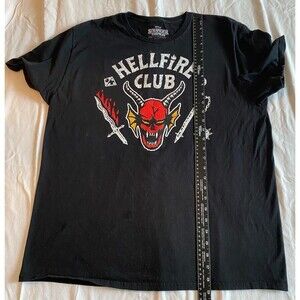 Netflix Stranger Things Hellfire Club Mens Size XL Graphic Black T-Shirt. Please reference attached pictures for graph, colors, condition and approximate sizing.