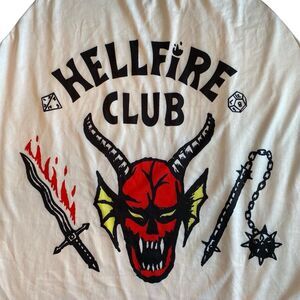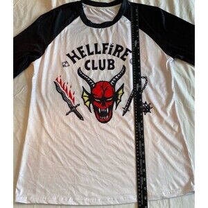 Netflix Stranger Things Hellfire Club Logo Adult Baseball Shirt. Polyester. No size tag. Please reference attached pictures for graphics, colors, condition and approximate sizing.
