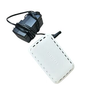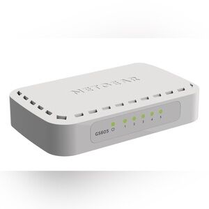 The Netgear GS605 5 port gigabit Ethernet home switch in a sleek white finish offers dependable connectivity for your home or office network. Designed for efficiency, it ensures stable and fast data transfer, making it an ideal choice for wired networking solutions. Euc