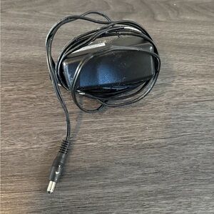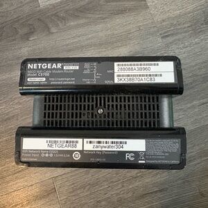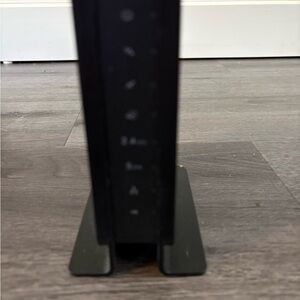 Sleek black design. Includes power adapter. Ideal for wired networking. In working condition. Replaced it with a smart router to go with our smart system. There is some paint on the cord/plug.