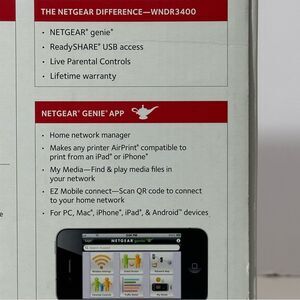 *Netgear Genie App – home networking simplified (Home network manager, makes any printer AirPrint compatible to print from an iPad or iPhone, My Media to find and play media files in your network, EZ Mobiel connect-scan QR qode to connect home network). For PC, Mac, iPhone, iPad, & Android devices.