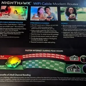 Netgear Nighthawk AC1900 Modem Router. It has been used for about a year & has had no issues. I have reset it, it has all the cables, original box & is ready to go!