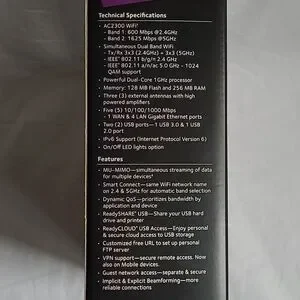•AC2300 WiFi Band 1: 600 Mbps @ 2.4GHz; Band 2: 1625 Mbps @ 5GHz
