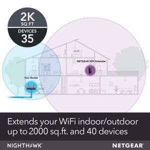 NETGEAR Nighthawk X4S Tri-band WiFi Mesh Extender with FastLane3™ Technology provides speeds up to 2.2Gbps, while high-power internal antennas extend WiFi range in hard-to-reach areas of your home. The dedicated WiFi link avoids automatic bandwidth reduction of extended WiFi signals. The wall-plug design makes placement easy and inconspicuous.