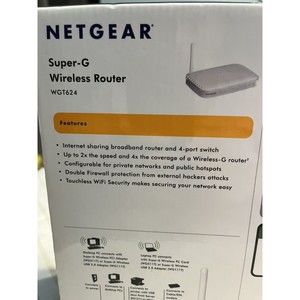 This Netgear wireless router can provide high-speed internet connection with a maximum wireless data rate of 108 Mbps and a LAN data rate of 100 Mbps. It is perfect for home networking and connectivity needs. The router is manufactured in China and is compatible with various devices through wireless connectivity. The brand Netgear is known for its reliable networking products, and this wireless router is no exception. The model WGT624 is easy to set up and use, making it a preferred choice for many users.