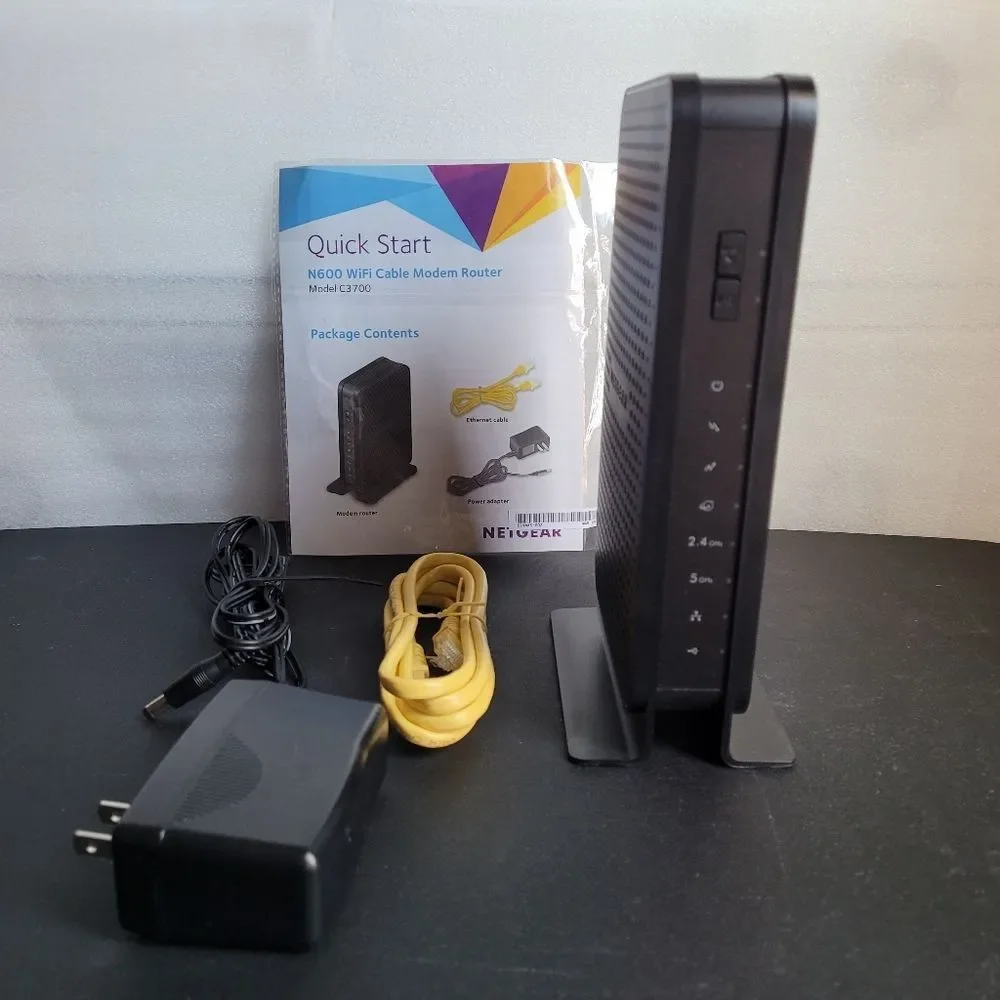 Netgear N600 8x4 WiFi DOCSIS 3.0 Cable Modem Router (C3700) is compatible with Xfinity, Cox, Spectrum and more Cable providers. Unit is in very good condition. Comes with power cord, quick start guide and ethernet cable.