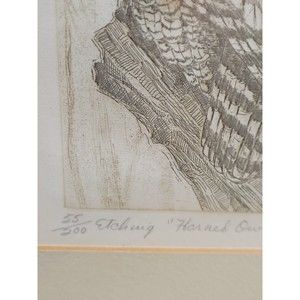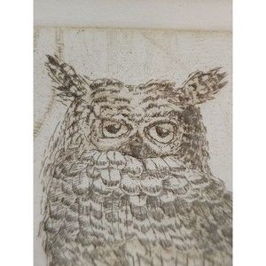 Netia Worley 1974 Etching Horned Owl Numbered 55/200 Artist Pencil Signed