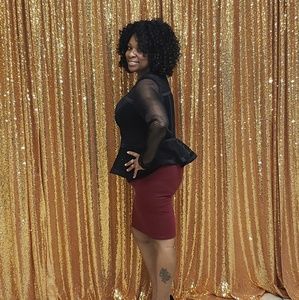 Black see through peplum jacket. Fits more like 2x. Really adorable. Ppl will stop and ask where u got it!