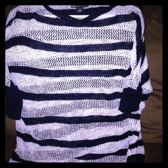Navy blue and white nautical net top. Can be drawn up with the string on the left side.