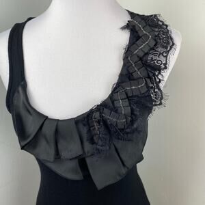 Neu Look Black Ruffle Lace Beaded Embellished Tank Top Shell Size 12