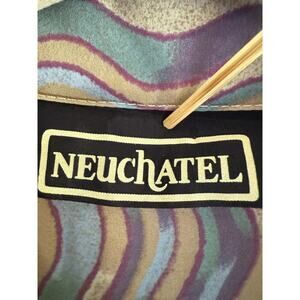 Neuchatel Vintage Tie Bow Swirl Pattern Button Up Blouse Retro size small