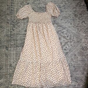Neuflora Brookfield Dress Small EUC Puff Sleeve Smocked Bodice Floral Midi Cottagecore