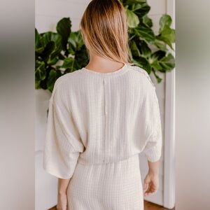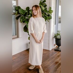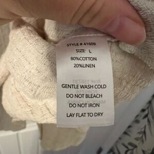 Beautiful NWT Neuflora Elbridge top. I really wanted to love it but it just doesn’t look right on me. Size large, cream/beige color. Wide, flowy sleeves! 80% cotton, 20% linen.