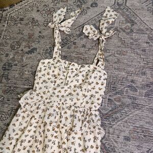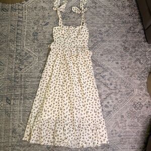Neuflora Summerville Dress Medium EUC Tie Strap Smocked Bust Floral Midi Cotton Lined