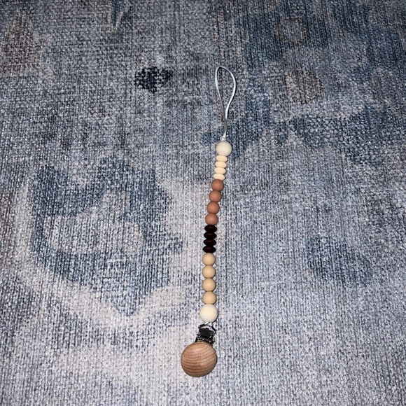 Neutral paci clip with silicone and wooden beads!