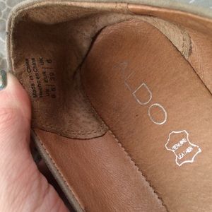 Reasonably worn, but not worn out. Purchased ate Aldo's. Suede finish with slight discoloration from a few wears, but not very broke in. These don't fit my foot width but are great to match with anything.