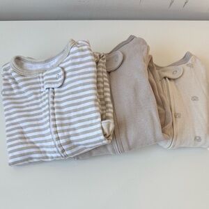 Neutral Baby Zip Sleepers Bundle (3) Beige, Stripes and Print- Size 0-3 Months