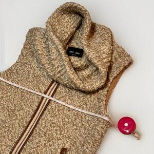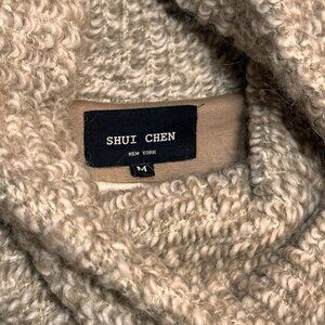 Neutral Cowl Neck Knit Shui Chen Vest Womens Medium Wool Alpaca Zip Up Leather
