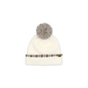 Neutral Horizontal Stripe Cuffed Pom Beanie NWT
