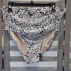Neutral Leopard Print High Waist Full Coverage Bikini Bottom | Kona Sol | 1X