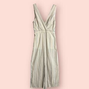 Neutral Linen Jumpsuit Romper Belt WaistPants v-neck size xs harper heritage