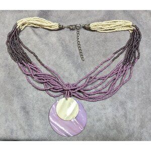 Neutral Mermaidcore Purple And White Glass Beaded Shell Pendant Necklace