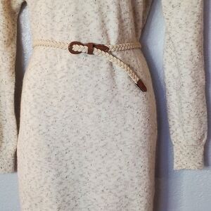 Neutral Mock Neck Belted Cream Knit Sweater Dress Size Medium