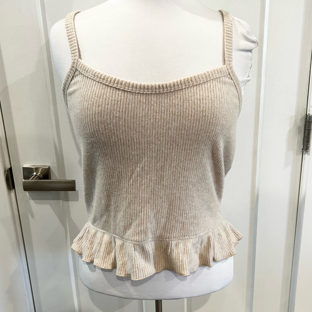 Neutral Ruffle Ribbed Tank
