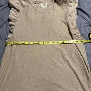 Elevate your wardrobe with this stylish neutral ruffle sleeve top. Perfect for any occasion.