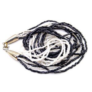 Neutral Seed Bead Torsade Necklace, Black and White Vintage Strands, Multi Strand Classic