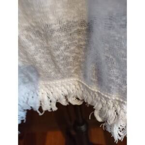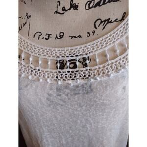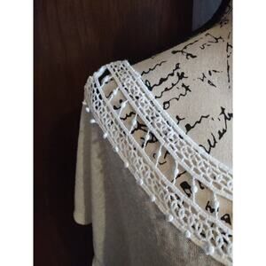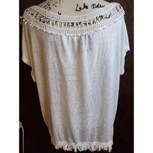 Neutral Short Sleeve Dolman Ivory Fringe Crochet Top XL Bauble Boho Burnout