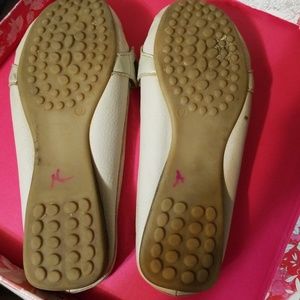 Neutral color matches everything. Super-soft cushioned insoles. Nice rubber knobbed soles that don't skid.