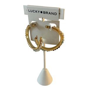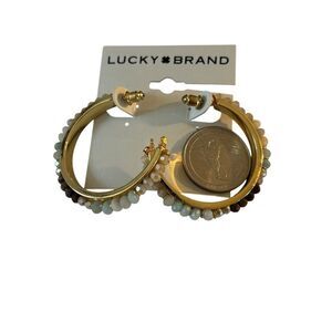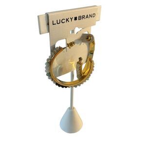 Neutral Stone Gold Tone Hoop Earrings.