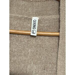 This cozy cardigan whispers of crisp mornings and warm beverages. Its soft tones and gentle fabric make it a comforting companion for cooler days.