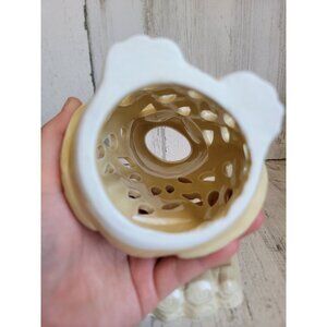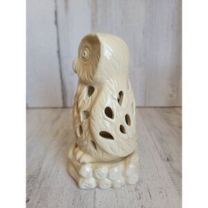 Neutral colored owl ceramic tea light candle holder Unique home decor figure