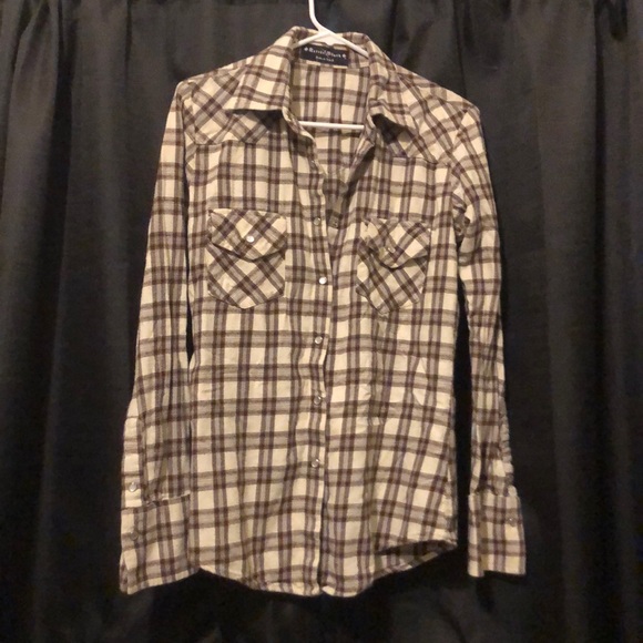Neutral tone flannel, perfect for fall! Cream and brown with light blue accents is the pattern