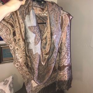 Neutral patterned scarf.