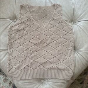 Neutral tan vest women’s size small B pointelle diamond pattern texture boho