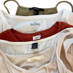 6 piece clothing lot of neutral basics. Includes 4 crop tops, 1 reg top and a dress. Mixed brands. Most are NWOT. Sizes S/M