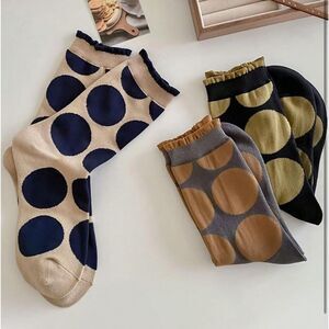 The women's socks are designed with polka dots, geo pattern, mid-calf and soft material. Ultra-stretchy fabric is soft and cozy to wear. 3-pack
