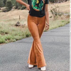 Super soft and crazy stretchy Neutral tan brown velvet flare pants ! These are insanely versatile!! You can do anything from lounge around to hit the town!!!! You will absolutely love these!!!!