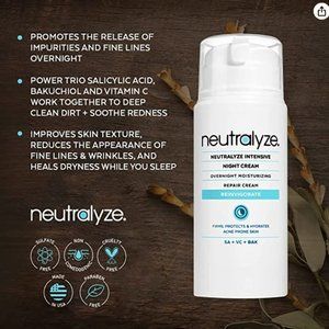 Neutralyze Intensive Night Cream: An advanced, nourishing night time moisturizer is absolutely essential to complete your every day skincare routine. Neutralyze Intensive Night Cream is a medical-grade Vitamin C, Bakuchiol (retinol alternative) & 2% Salicylic Acid lotion, a rejuvenating overnight moisturizer cream for acne prone skin & anti aging. Suitable for all skin types and skin tones! (Large 3.4 oz/90+ day supply)