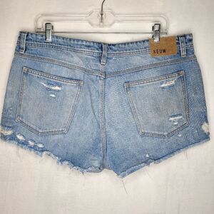 Neuw Blue Jean Shorts Distressed Raw Hem Size 14