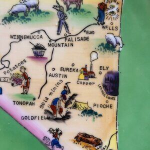 Vintage hand painted ceramic Nevada state collectible decorative souvenir. Measures 8 inches diameter. There are two bumps in the glaze in the bottom left of the plate, see photo. Otherwise, in excellent condition. Marked Handpainted Made in Japan on the back. There are many souvenir plates for sale in my closet. Check them out, bundle and save!