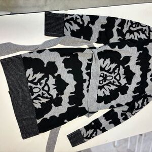 100% Merino Wool, Long duster cardigan, soft feel, beautiful patterns, shawl collar, black and grey pattern, XS, belted and snap closures. Smoke free home, no moth holes. Very little wear.