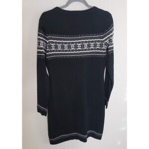 Neve Woman's Size M Sweater Dress Long sleeve Merino Wool Polyester Blend Nordic Fair Isle Black White and Gray Great condition!