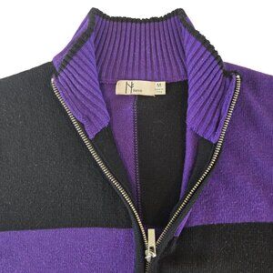 Neve Women Full Zip Mock Neck Poly Wool Cardigan Sweater Purple Black Medium